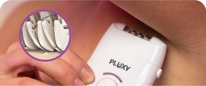 With its 17mm discs, the Pluxy™ Body Epil Pro gets to hair 4x shorter than waxing, plucking it straight from the root and keeping it from growing for up to 4 weeks, ensuring that it grows thinner with each removal.