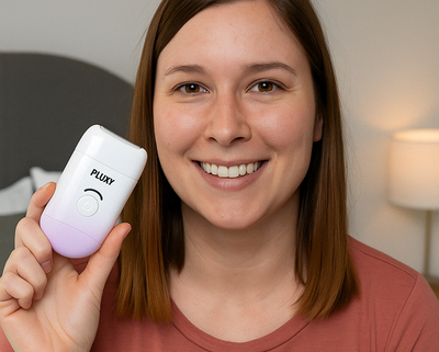 The device features many mechanical discs which open and close as you gently glide it over your skin. This allows them to adapt to the thickness of your hair, thick or thin, to pull it from the root - without touching your skin. The length of your session varies based on the size of the treatment area, ranging from seconds to a few minutes. This slows down hair regrowth, which can take up to four weeks, as Pluxy influences your body's natural hair growth cycle.